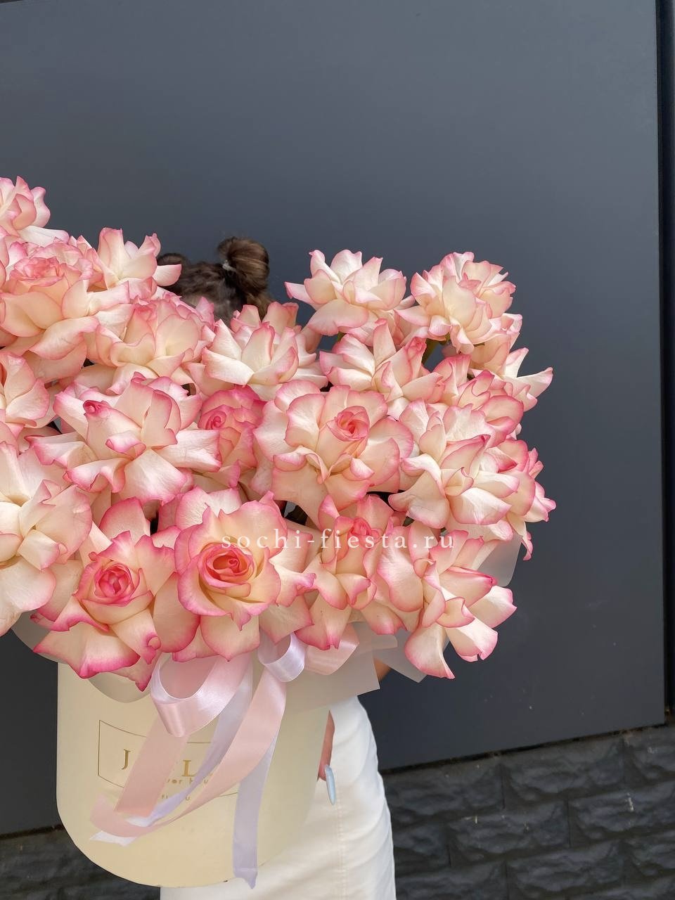 Для заказа товара "31 французская роза Джумилия в боксе" с доставкой в Смоленске нажмите в корзину