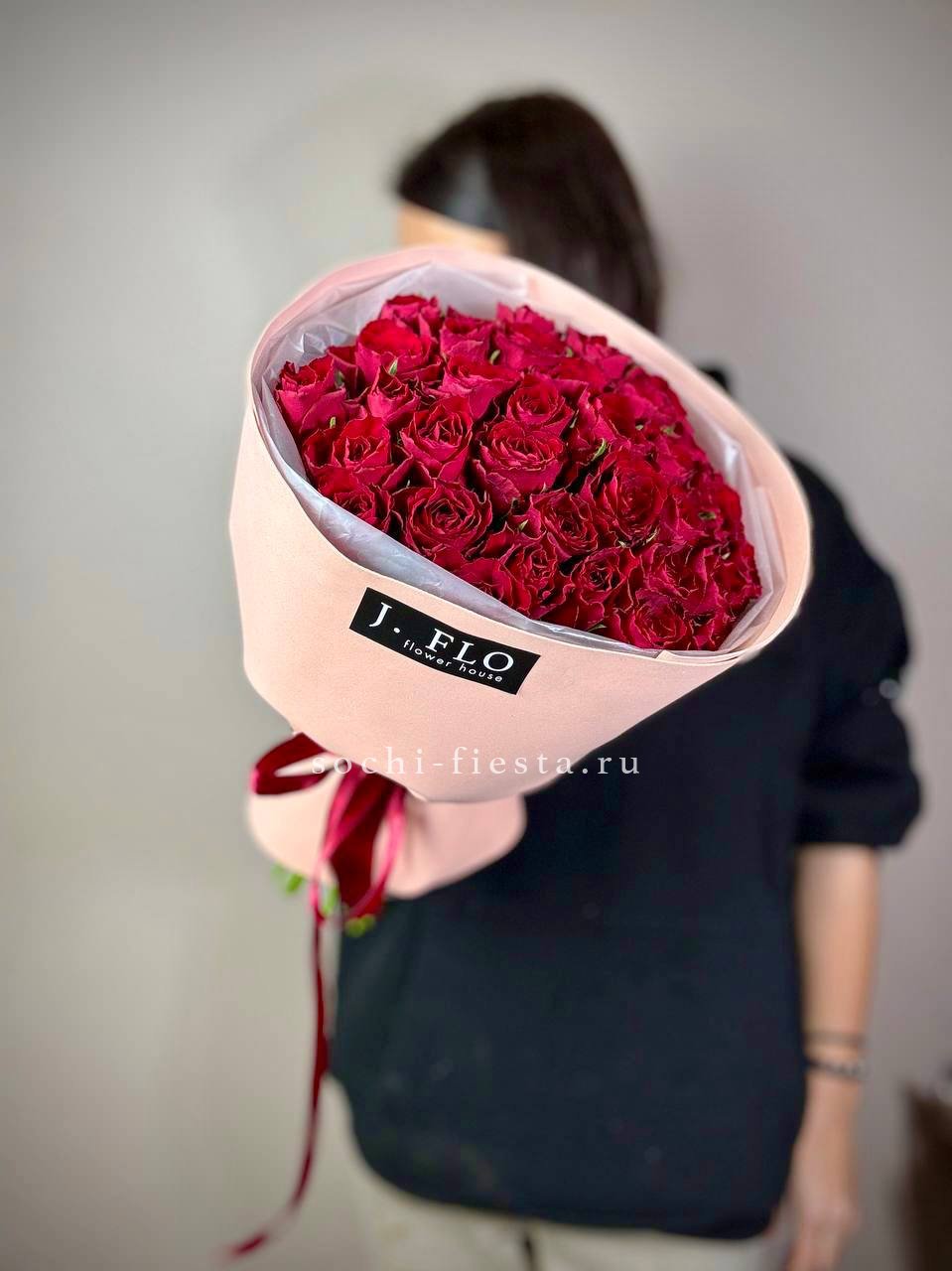 Тридцать пять кенийских роз в лаконичной упаковке подходят для современного интерьера и динамичного ритма жизни. Букет выглядит актуально и вписывается в минималистичную эстетику.