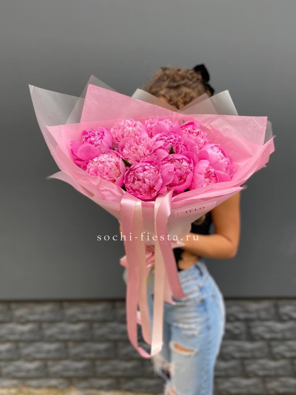 Пионы в воздушной упаковке из тишью создают впечатление лёгкости и движения. Полупрозрачная плёнка мягко обволакивает бутоны, сохраняя их естественную красоту и свежесть.