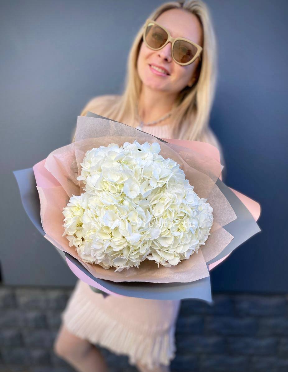 Для заказа товара "Букет из трёх белых гортензий" с доставкой в Смоленске нажмите в корзину