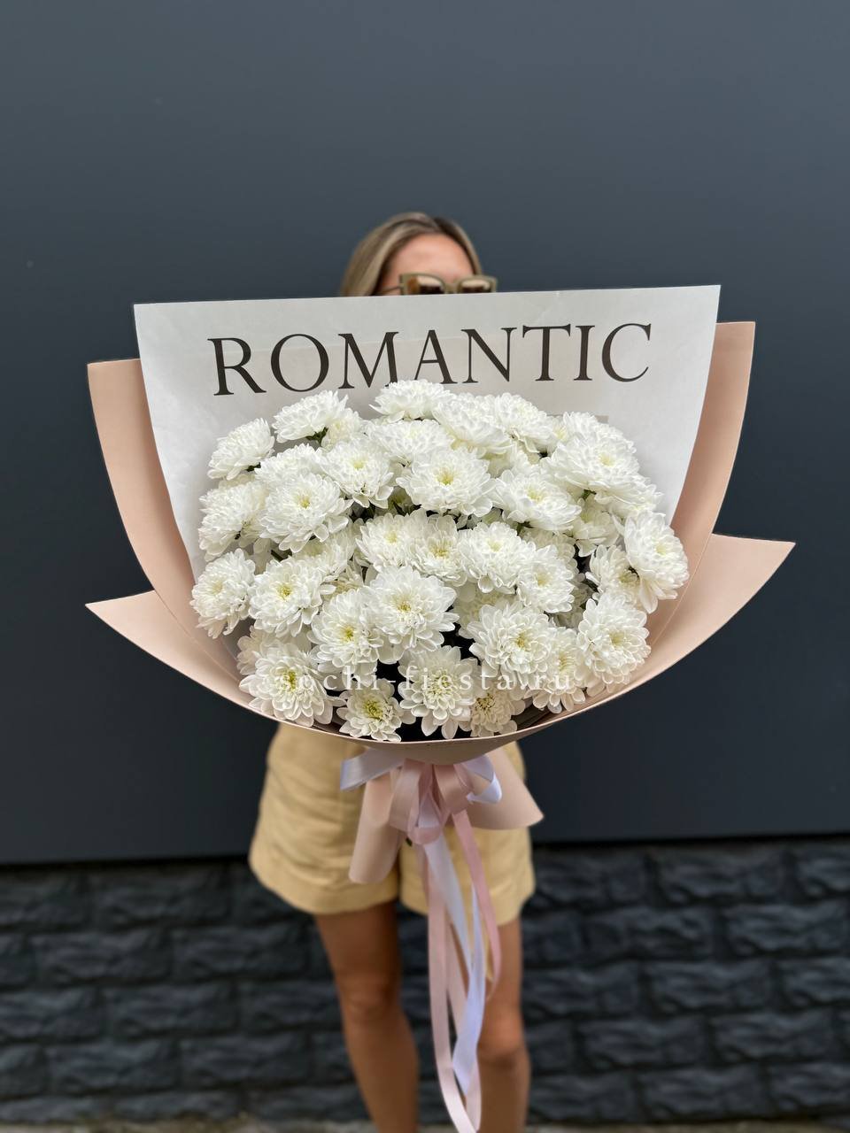 хризантема кустовая -9 шт., лента, дизайнерская пленка.