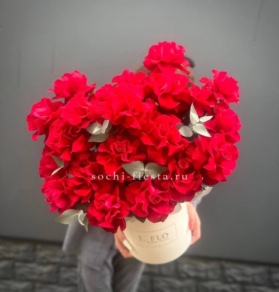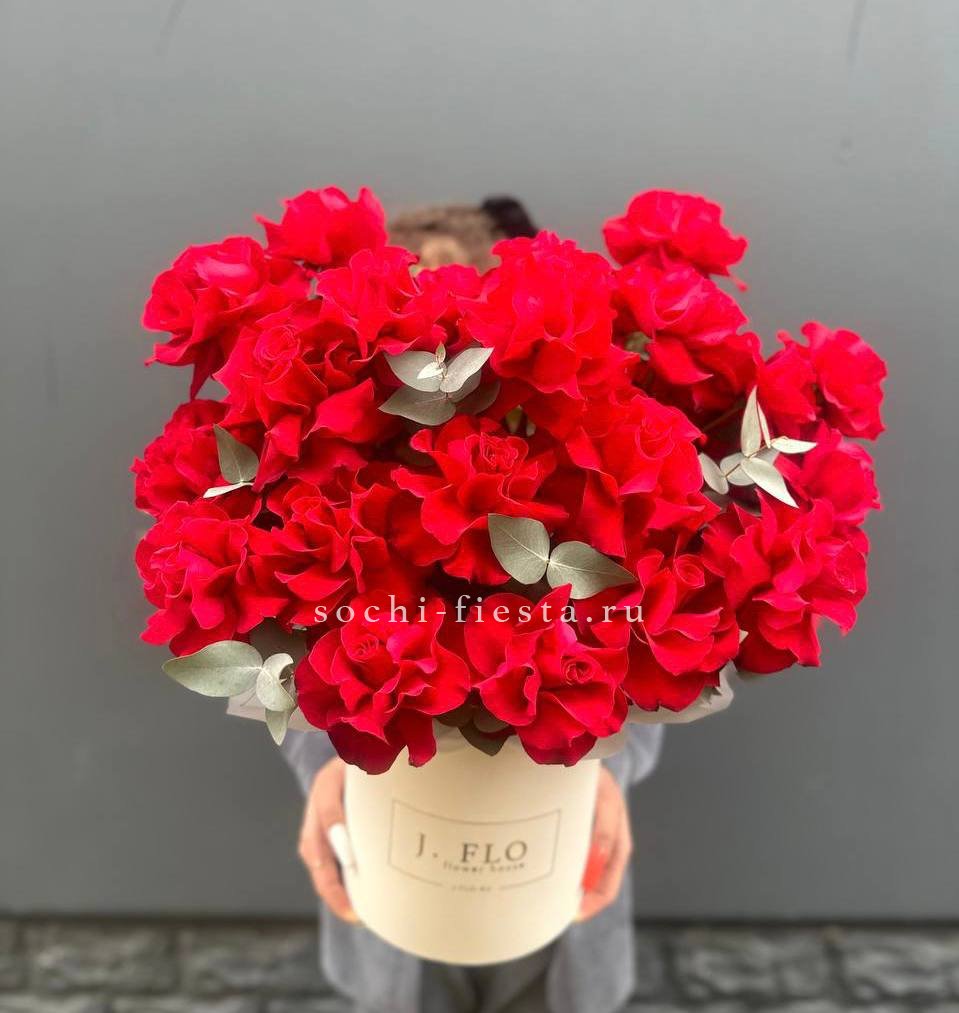 пионовидная роза, гортензия, эустома, декоративная зелень, бокс D20.
