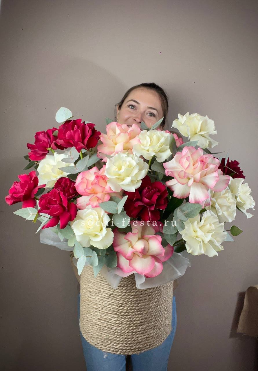 Для заказа товара "35 французских роз микс в джутовом боксе" с доставкой в Смоленске нажмите в корзину