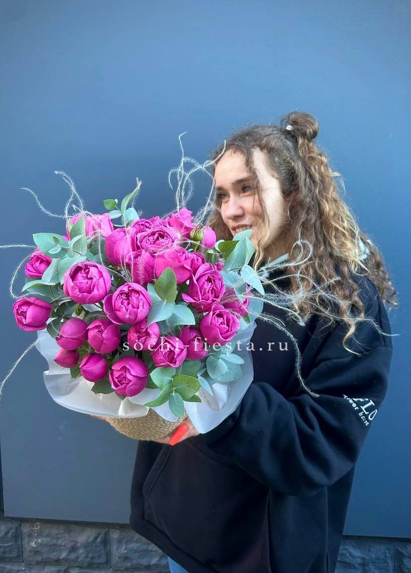 Для заказа товара "Пионовидные розы в джутовом кашпо " с доставкой в Смоленске нажмите в корзину