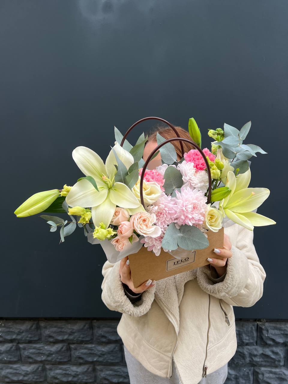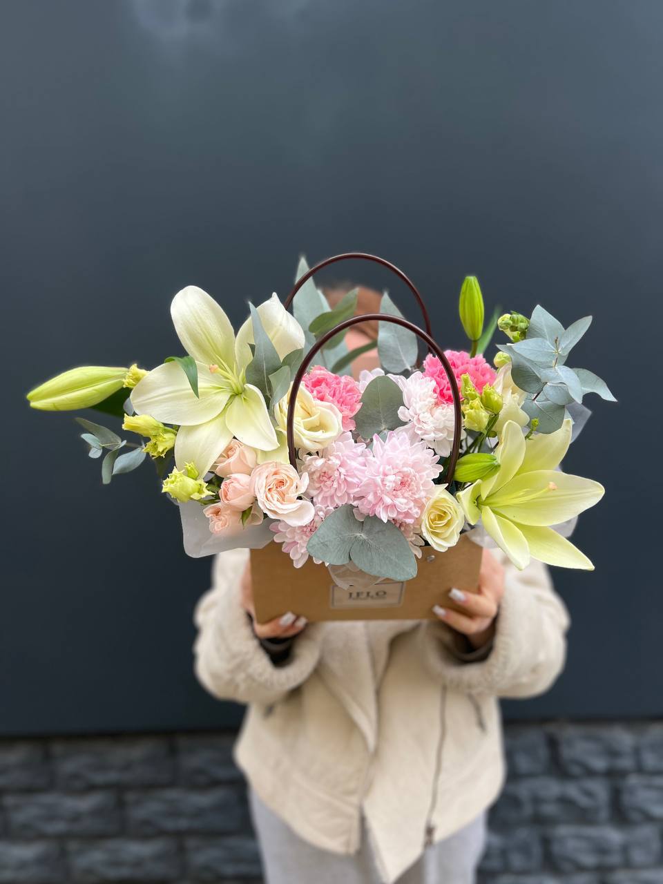 Погрузитесь в мир изысканных ароматов! Эта композиция — настоящее произведение искусства, где благородные лилии встречаются с нежными розами и воздушной эустомой. Свежий эвкалипт добавляет особые нотки. Это не просто букет, а стильный акцент, который наполнит пространство красотой и уютом. Идеально для выражения благодарности или глубокой симпатии.