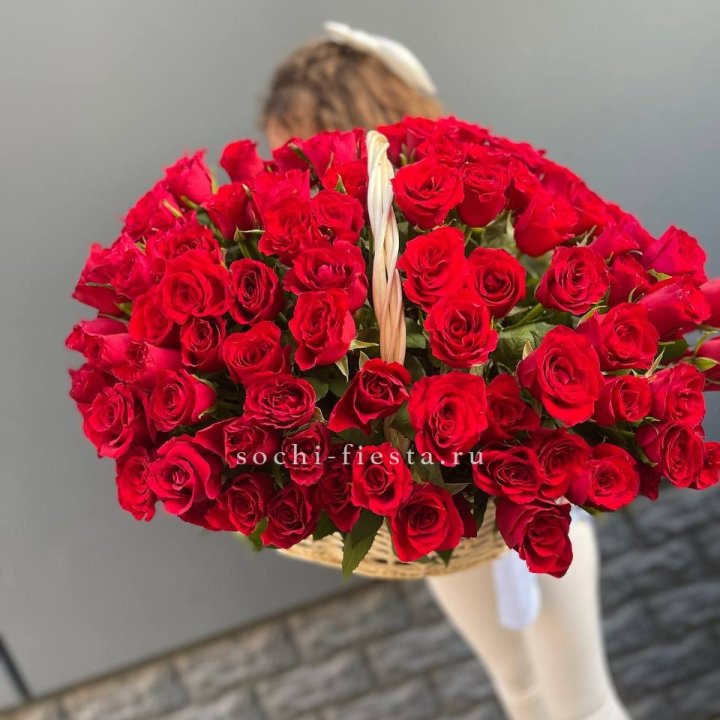 торжественная именинная цветочная корзина с розами куполом для поздравления в российском городе