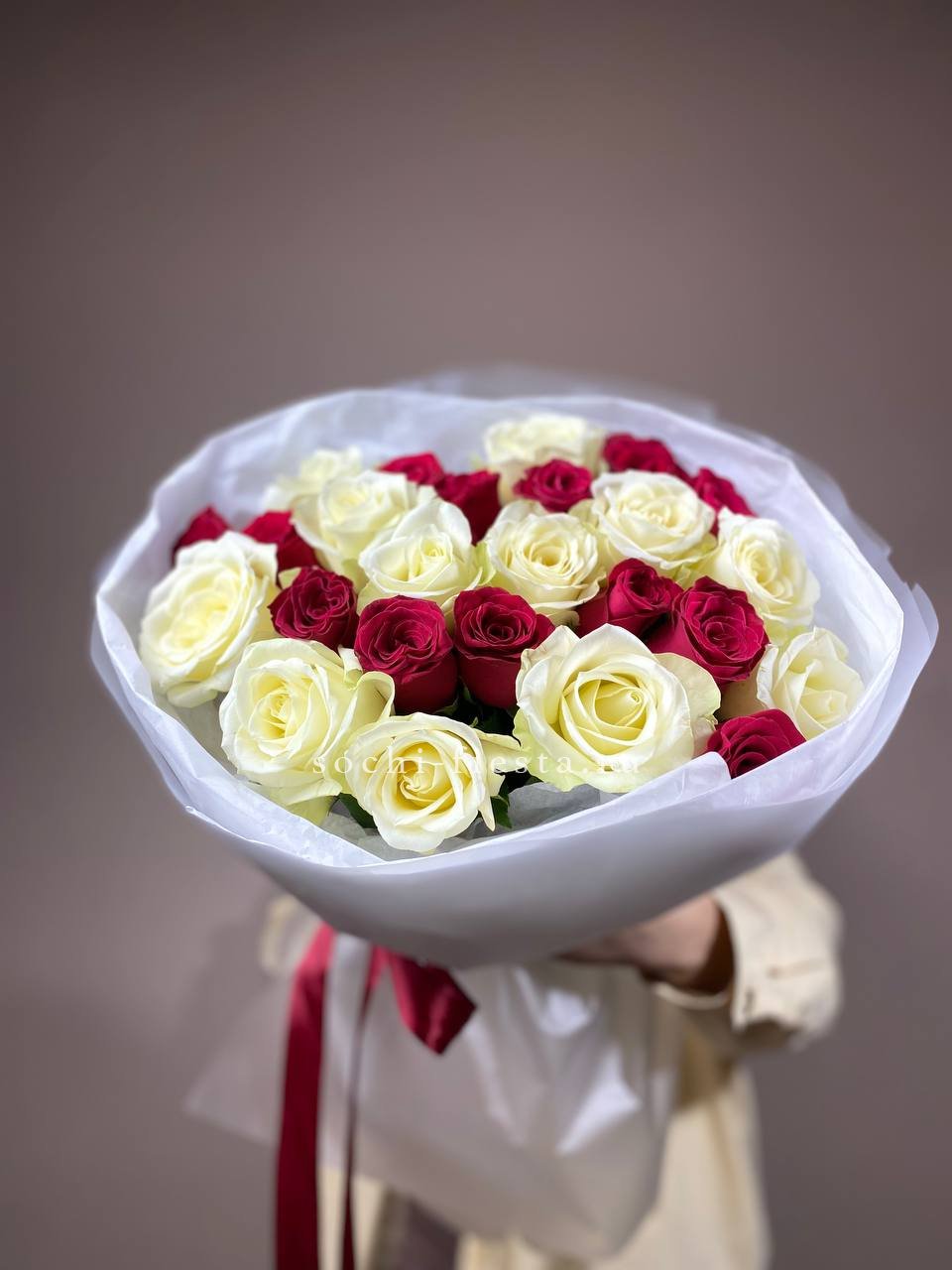 Для заказа товара "Букет их красных и белых 25 роз" с доставкой в Смоленске нажмите в корзину