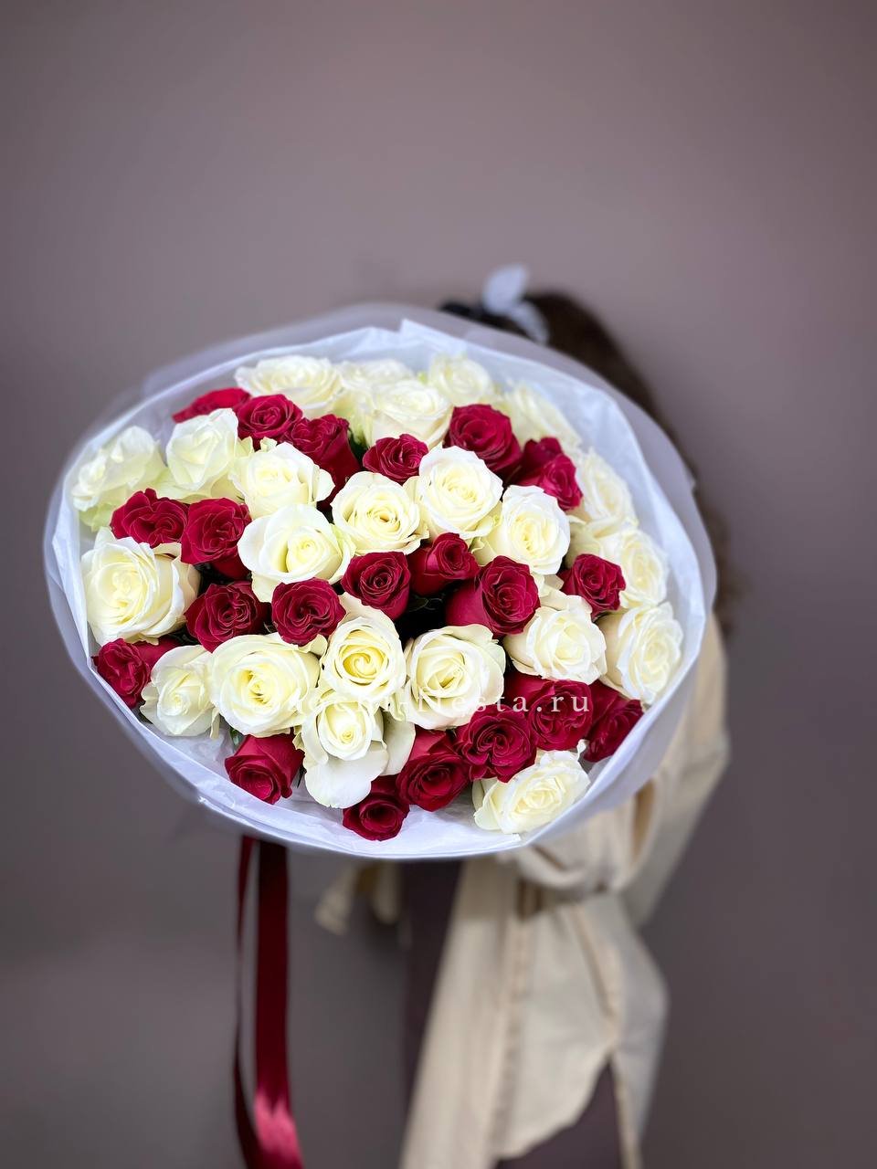 Для заказа товара "Букет из красных белых 45 роз" с доставкой в Смоленске нажмите в корзину
