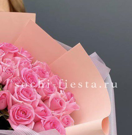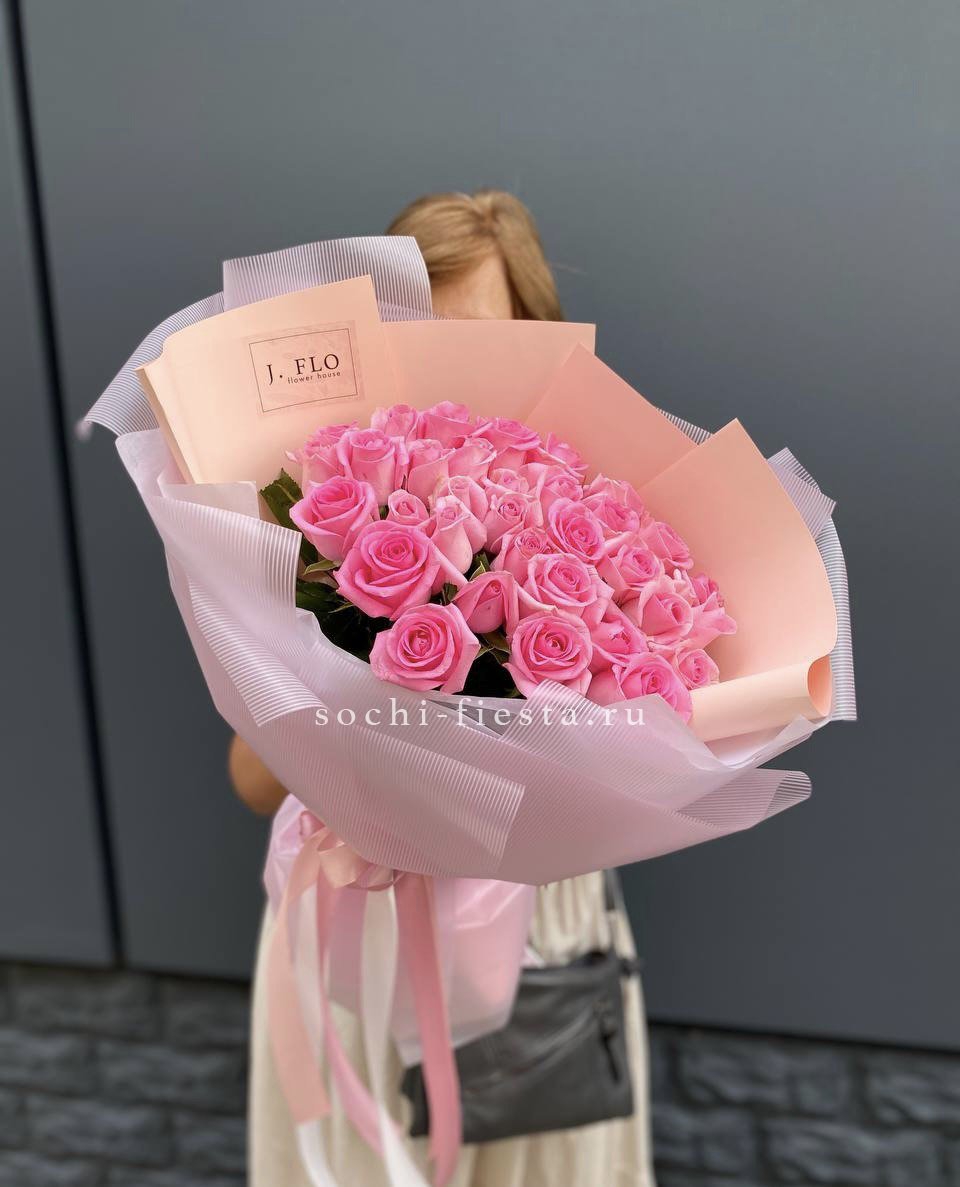 розовая роза 21шт., авторская упаковка с ушками.