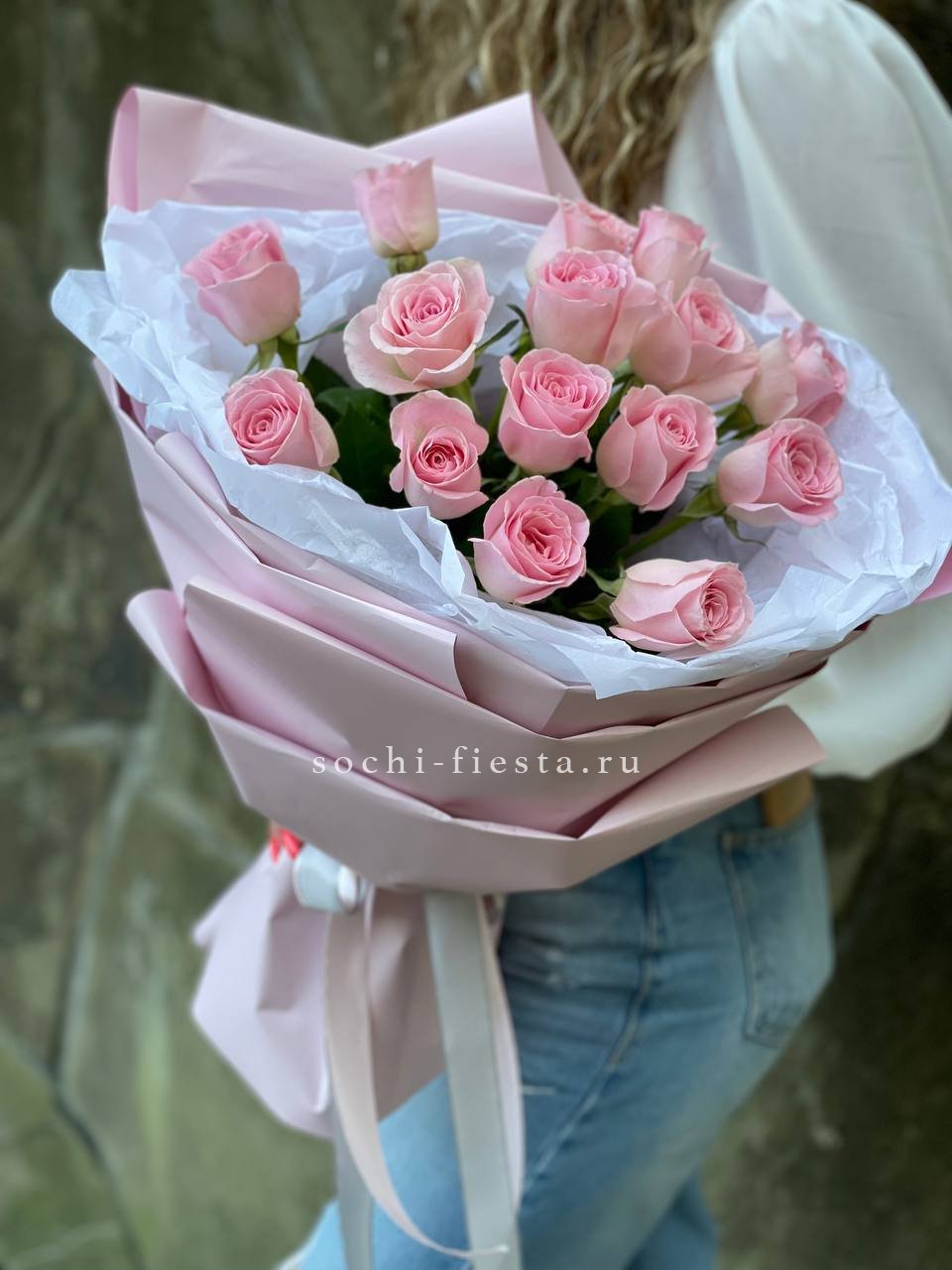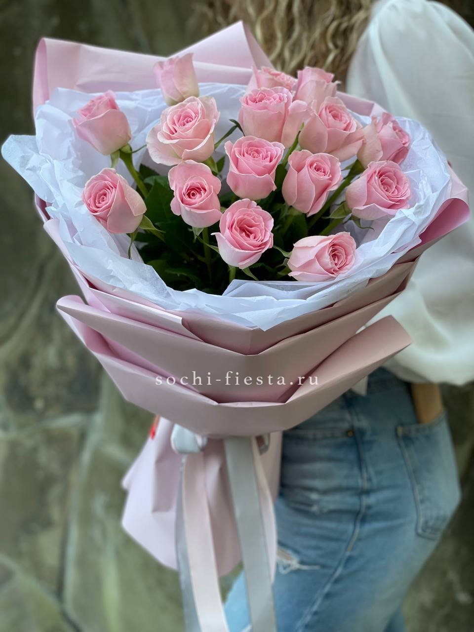 розовые розы - количество на выбор, авторская упаковка, лента.