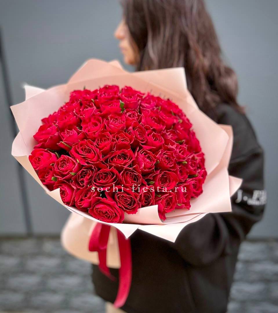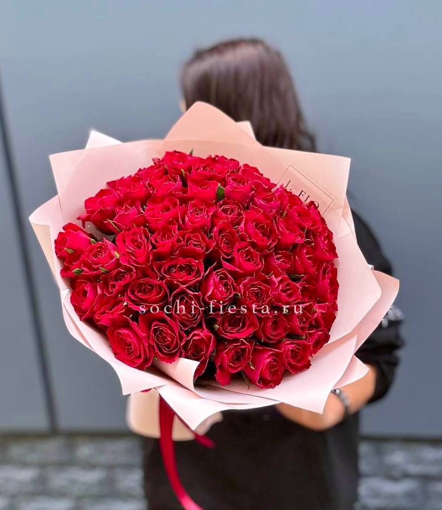 55 кенийских роз (35-40 см), лента, упаковка.