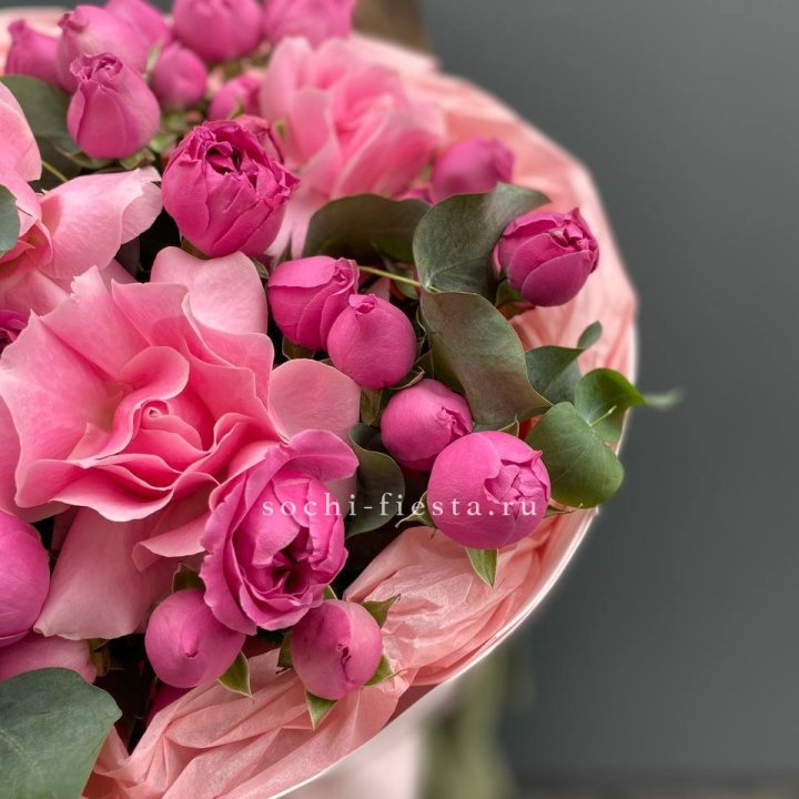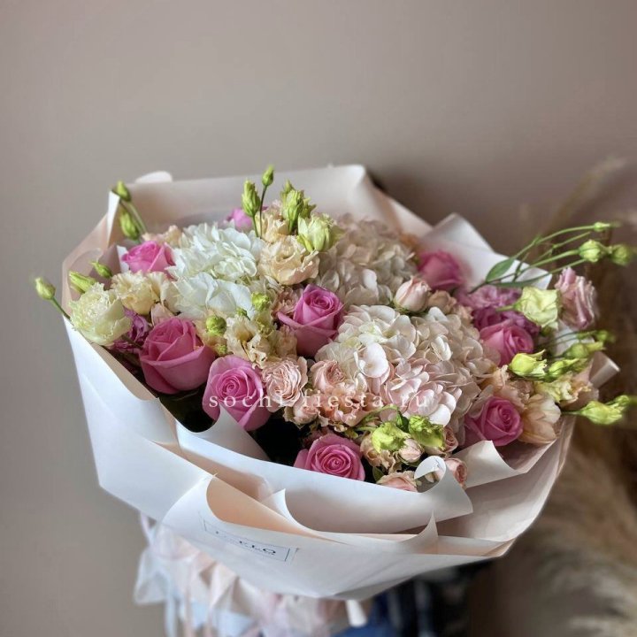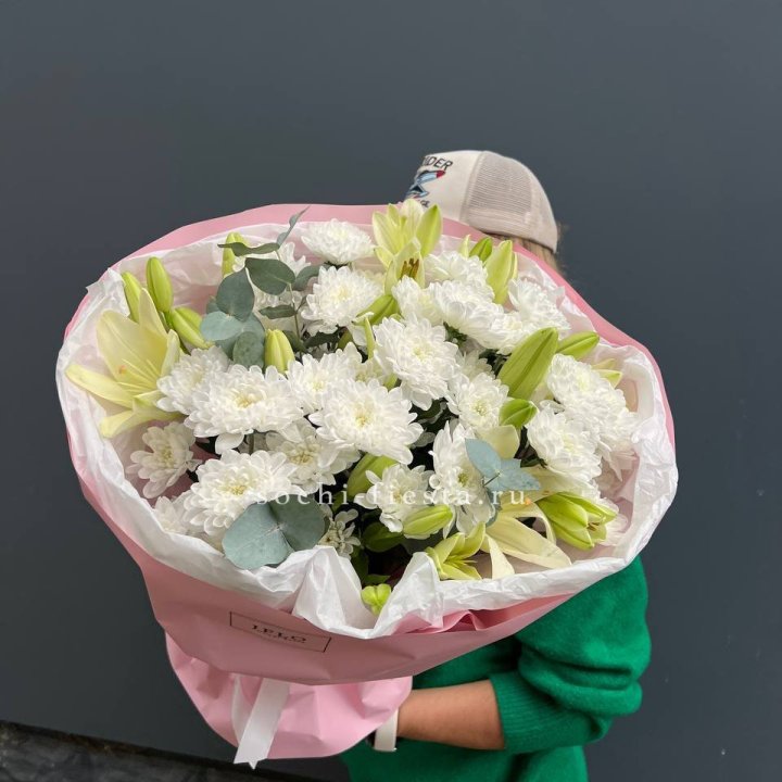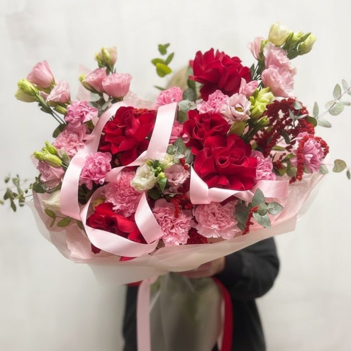 Зима и лето в Смоленске — розы и хризантемы как основа. Эти виды стабильны в поставках круглый год. Флорист дополняет их сезонными акцентами: хвойные ветви зимой, открытая эустома летом. Сборный букет в любое время года выглядит живым и актуальным.