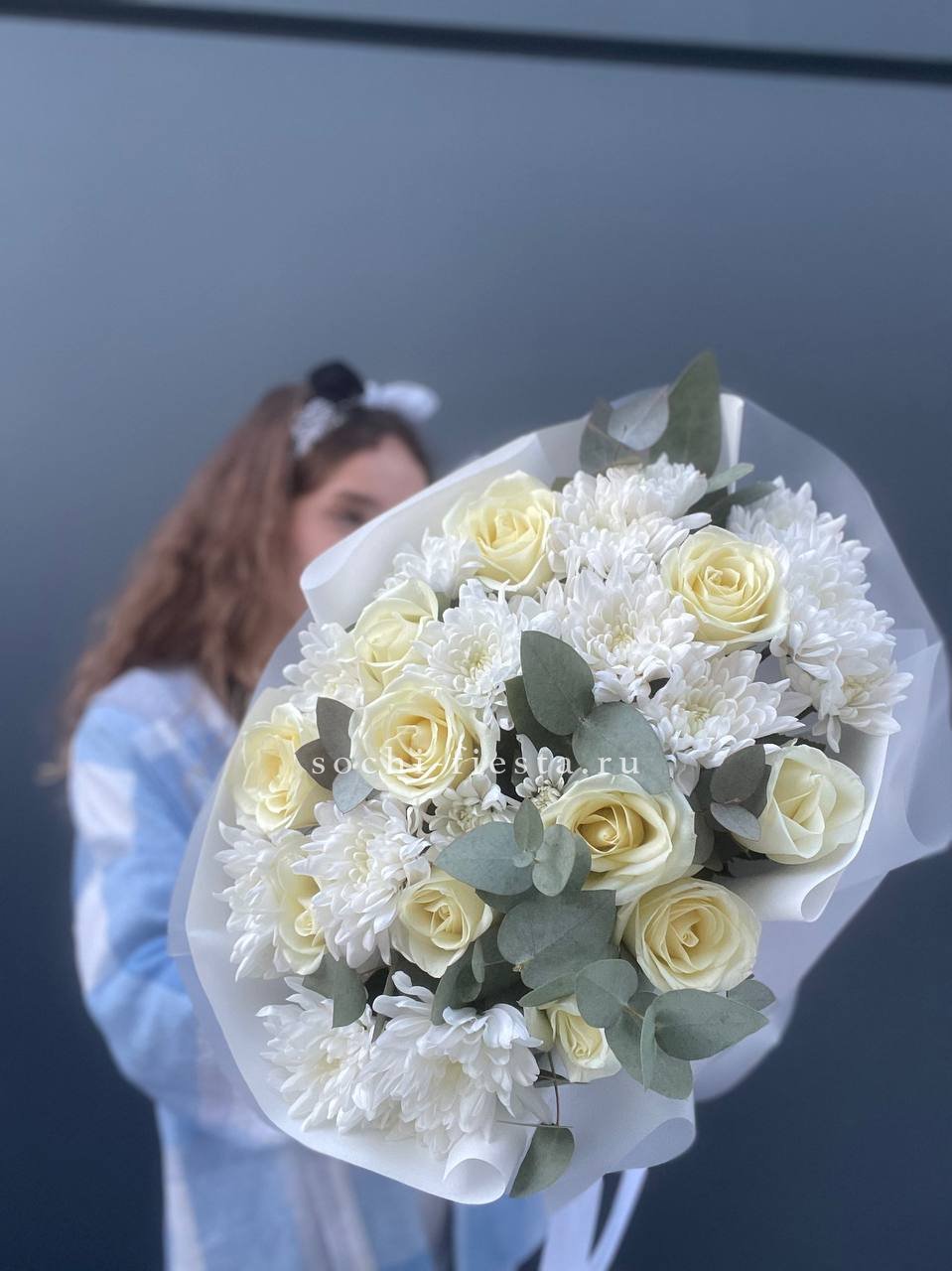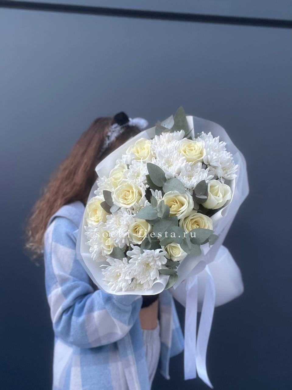 Для заказа товара "Букет хризантем и роз вайт шотс" с доставкой в Смоленске нажмите в корзину