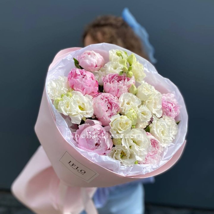 свадебная композиция с пионами и эустомой в Смоленске